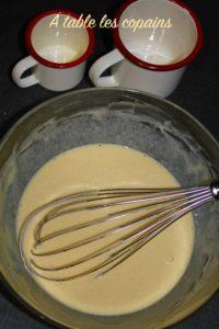 ajoutez l’huile puis le lait, salez et poivrez légèrement.
