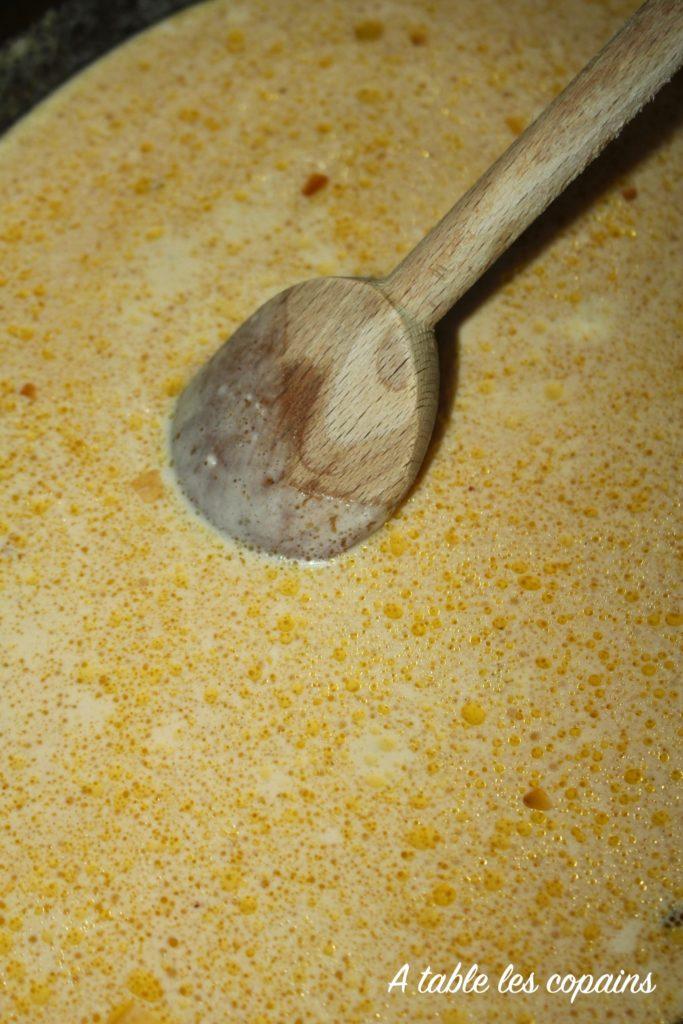Versez la crème de Neuchâtel dans la cocotte, reprendre une ébullition légère et faites un peu réduire et épaissir en tournant.