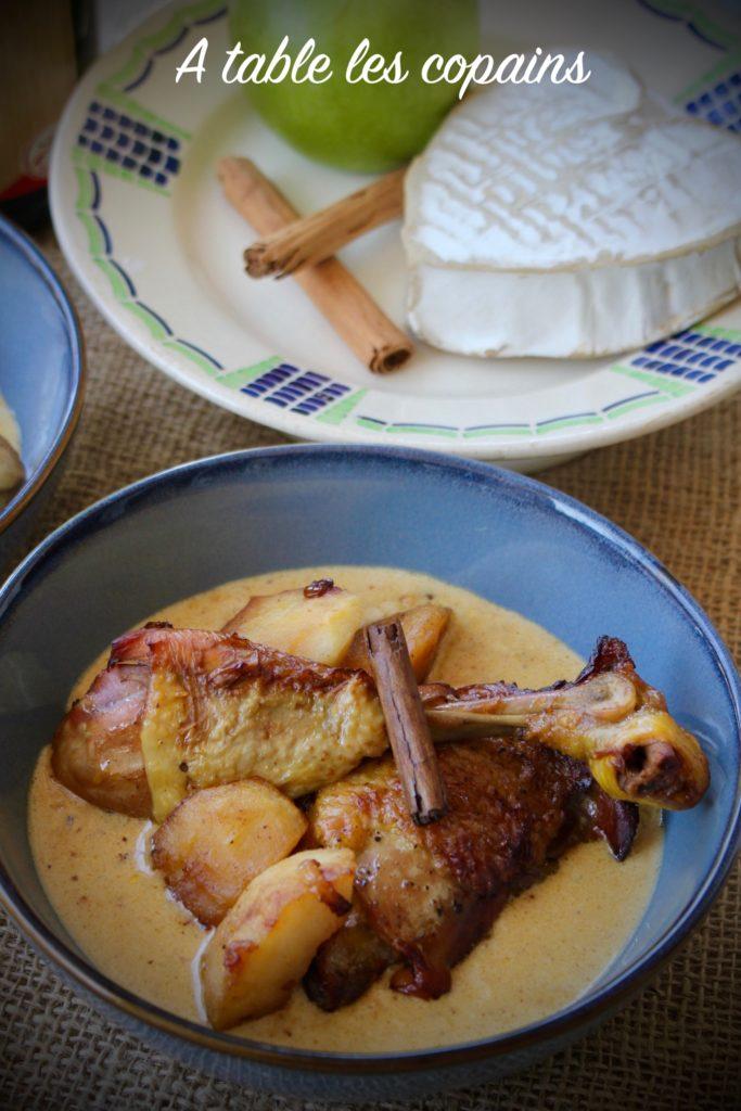 Versez la sauce au fond d’une assiette creuse, déposez les deux morceaux de la cuisse et 4 quartiers de pomme. Servez, c’est prêt !