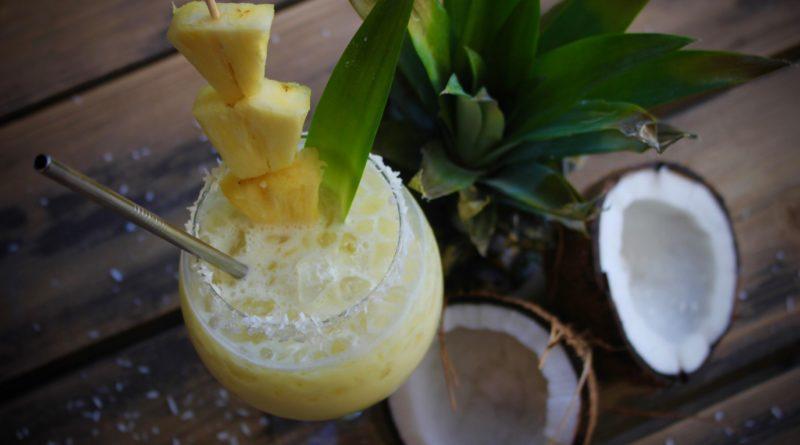 Tous les ingrédients doivent être frais, sauf le lait de coco qui doit rester liquide. Prenez un lait de coco de qualité, il sera moins sucré. Ici j’ai pris un lait de coco bio et équitable. Pareil pour le jus d’ananas, le seul ingrédient mentionné sur la bouteille doit être : jus d’ananas.