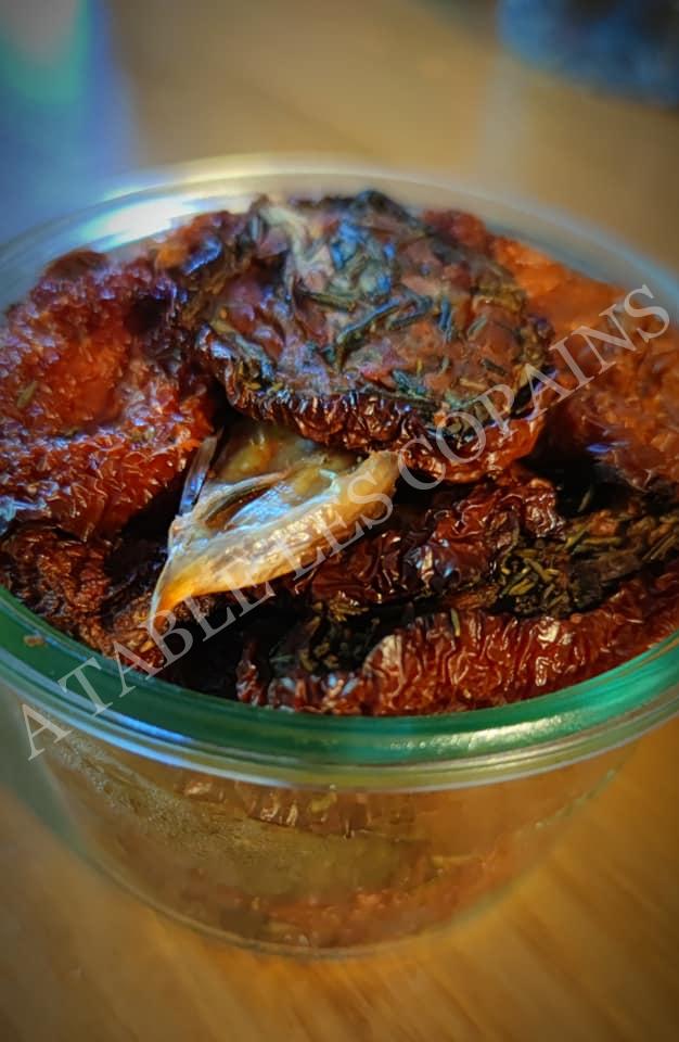 Une plaque fera un pot seulement, mais quel pot !!! Un concentré de bonheur… De plus l’huile se parfumera merveilleusement et pourra être réutilisée pour des salades par exemple. Note : vous pouvez évidemment les garder séchées, sans les plonger dans l’huile, mais vous vous priveriez de ce nectar délicieusement parfumé et réutilisable..