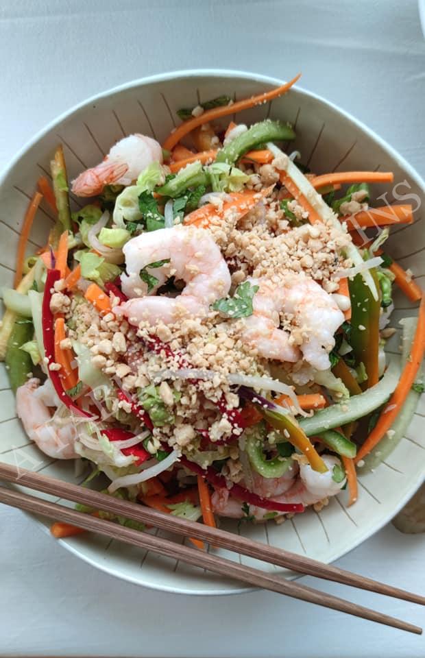 Qu’elle soit au poulet, aux crevettes ou au boeuf, cette salade asiatique est ma préférée de toutes. Il y a tout ce que j’aime, de la fraîcheur, du croquant, des parfums et du piquant !