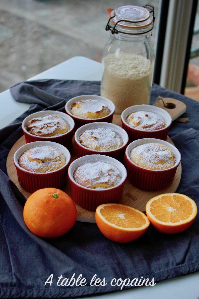 Dans une grande casserole d’eau, faites cuire les oranges entières et non pelées, pendant 2 heures à petit bouillon. Egouttez les, laissez refroidir. Coupez les oranges en cubes et mixez les finement (avec la peau) Faites blanchir les oeufs et le sucre au fouet du robot, jusqu’à ce que le mélange mousse et triple de volume. Dans le mixeur, mettez la purée d’orange, le mélange mousseux de sucre et d’oeuf et la poudre d’amande. Mixez assez pour obtenir une belle texture de crème. Versez dans des ramequins huilés ou beurrés, mettre au four à 180°c pendant 40mn. Laissez refroidir et saupoudrer de sucre glace. Dégustez….